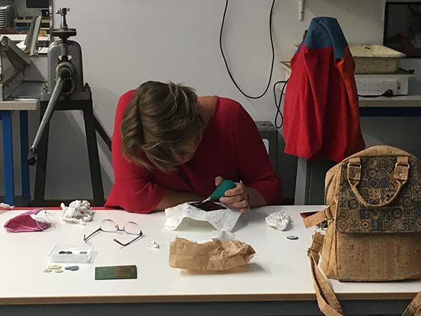 Annemarie liet ons zien wat een ringeloor is. Het is een kleine ballonpomp waar verschillende maten holle naaldjes op gezet kunnen worden. Ook had zij verschillende vormen koper en staal bij zich en veel verschillende voorbeelden.