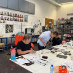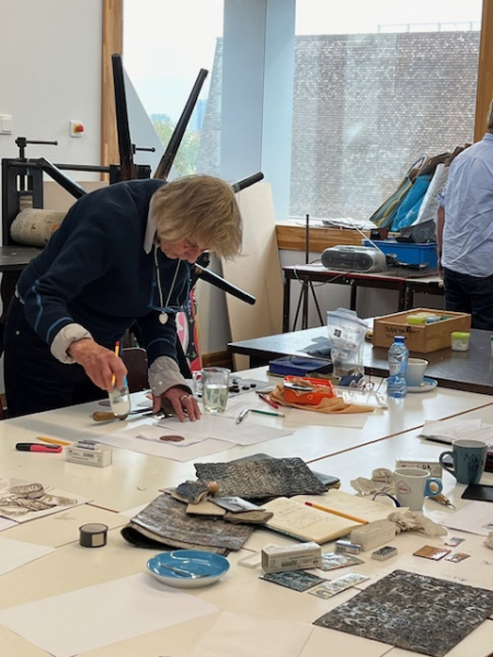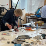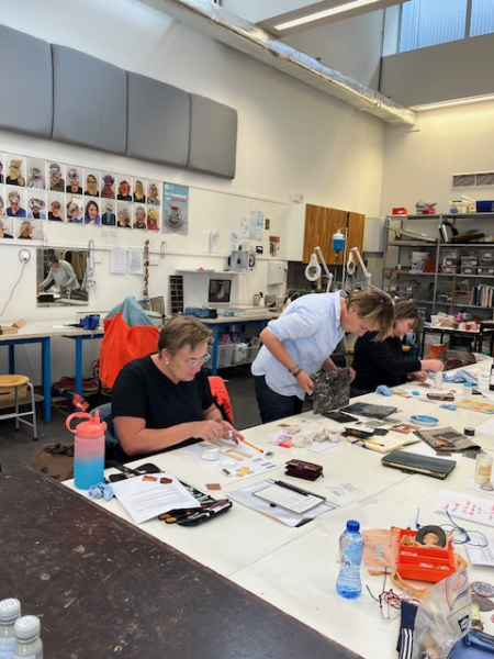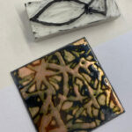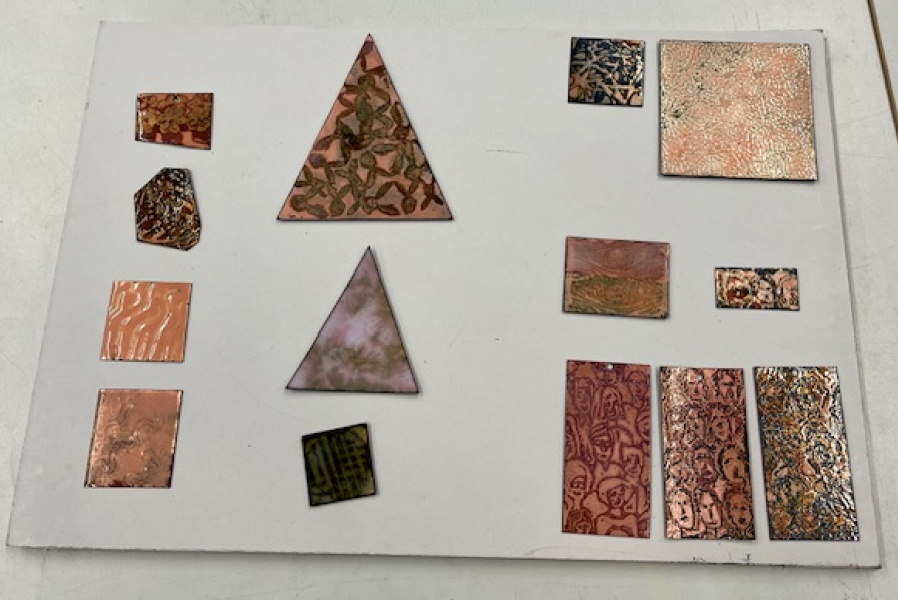 Tijdens deze sessie werd de High Firing techniek toegepast, waarbij een patroon op koper werd aangebracht. Door oxidatie van het koper ontstonden verrassende effecten, die verder konden worden afgewerkt met fondant. Er waren verschillende soorten fondant en emailles in wit en crème beschikbaar. De branding vond plaats bij ongeveer 930 graden, wat resulteerde in ongebruikelijke kleuren in de emailles. Deze techniek is ook toepasbaar op hellende oppervlakken, zoals kommen. Christine had inspirerende voorbeelden meegebracht, wat de deelnemers motiveerde om creatief aan de slag te gaan. De resultaten waren vaak onverwacht; wat de één als een mislukking zag, vond een ander prachtig.