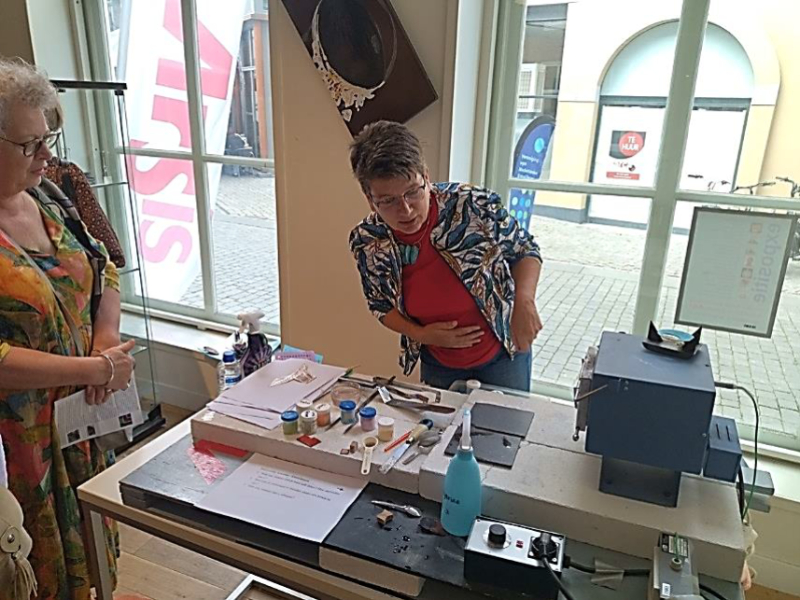 Tijdens de expositiedagen op alle vrijdagen en zaterdagen in augustus, en op zondag 31 augustus, waren steeds twee VNE-leden aanwezig. Die hadden het heel druk: bezoekers werden uitgebreid geïnformeerd over emaille, emailleren en de verschillende technieken zoals zichtbaar in de geëxposeerde kunst werken. Bovendien werd er twee keer op zo’n dag een demonstratie gegeven. Dat verliep heel goed: iedereen bedankt voor de inzet!