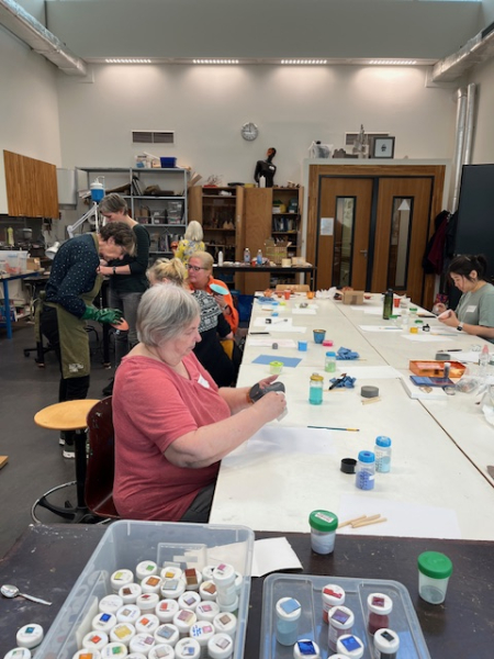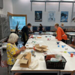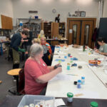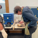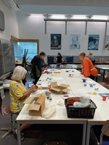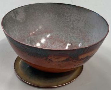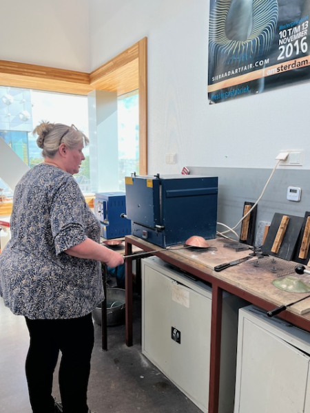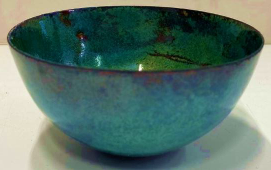 Op zaterdag 13 september ging een groep van 10 personen aan de gang met het emailleren van een koperen kom of schaal. Daarvoor moet je vooral grote handen, een soepele pols, veel geduld en een perfecte strooi-techniek hebben. Dat hadden niet alle deelnemers. Misschien beschikt alleen Christine over al deze eigenschappen, maar sommige deelnemers kwamen wel al aardig in de buurt. Ik heb een aantal foto’s uitgezocht uit alle foto’s die Christine heeft gemaakt, en laat deze hier aan jullie zien. Er zijn er meer gemaakt, dit is een impressie.